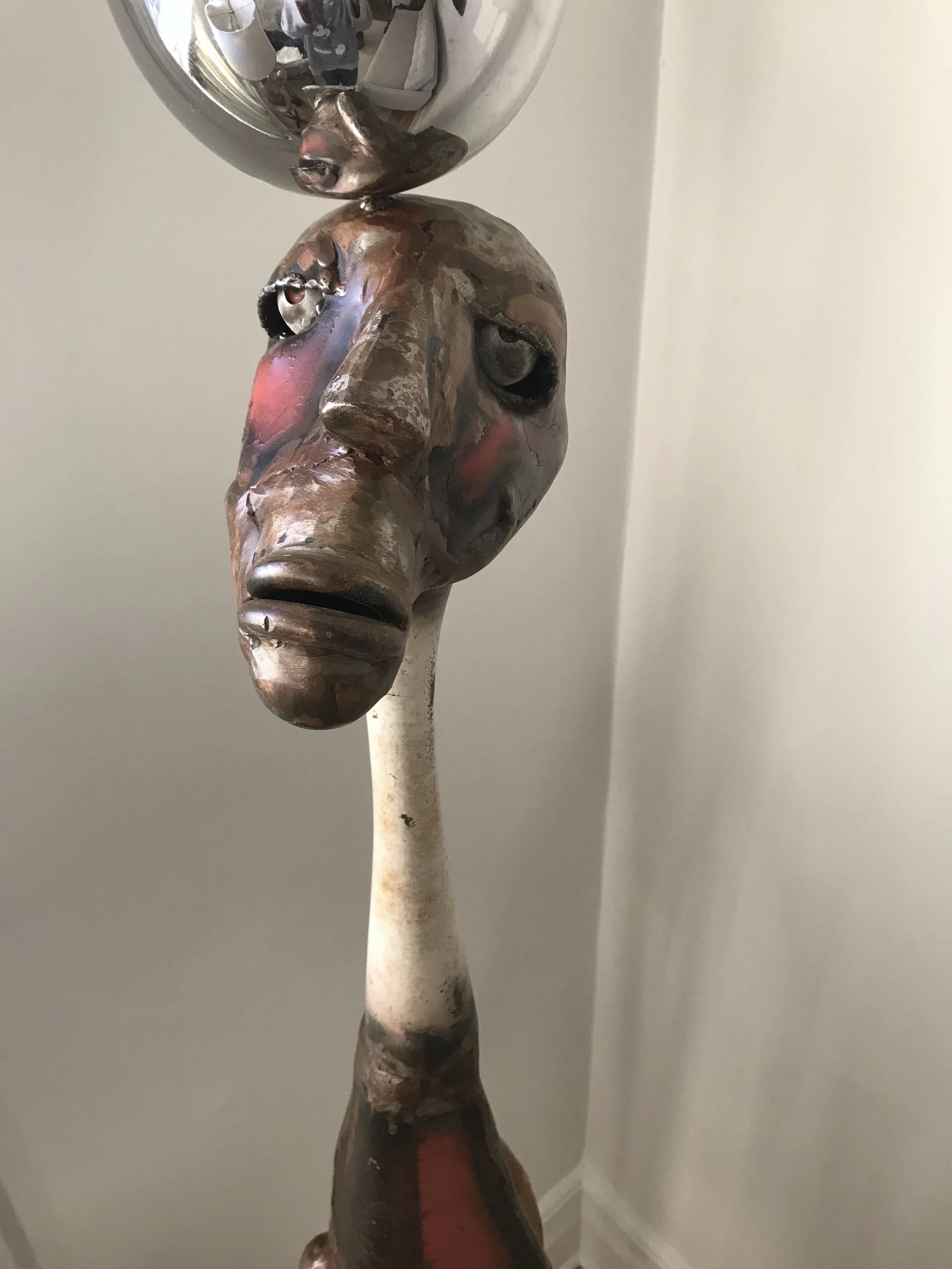 Noteworthy: Reflective gazing ball on head for hours endless gazing.